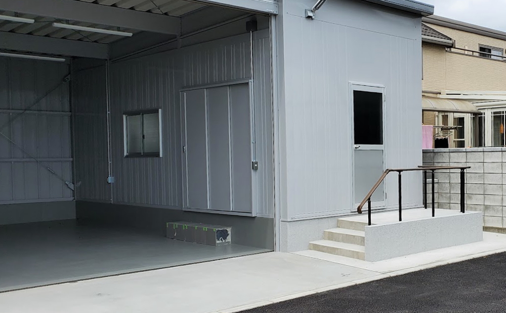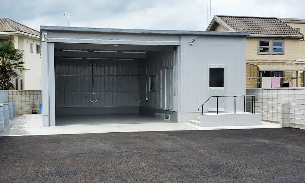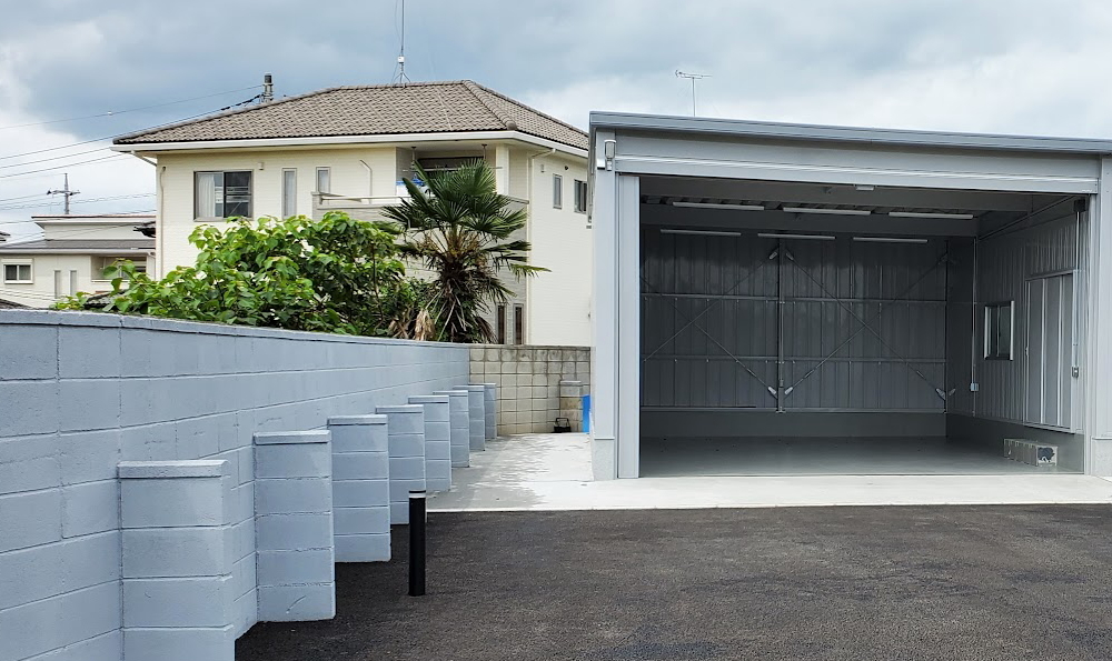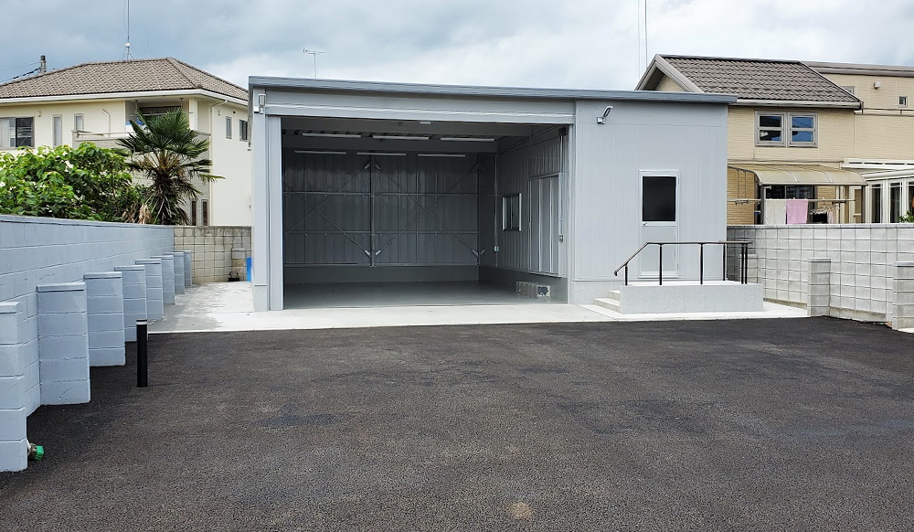資材をしまう倉庫を兼ねた車庫が完成しました。
